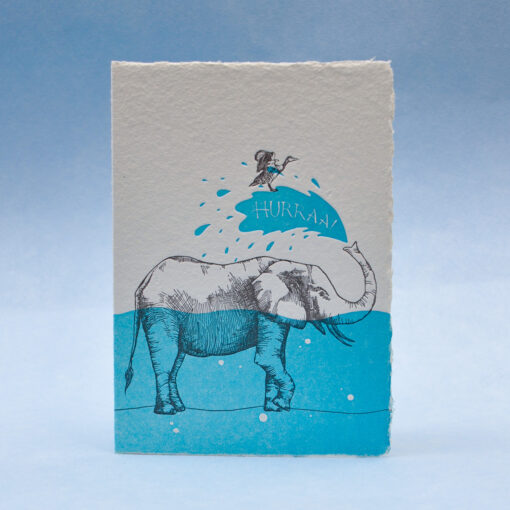 An elephant and a duck enjoying a bath on a hot summer day. They are ready to celebrate any success with you, so send this card to your friends to cheer them on!